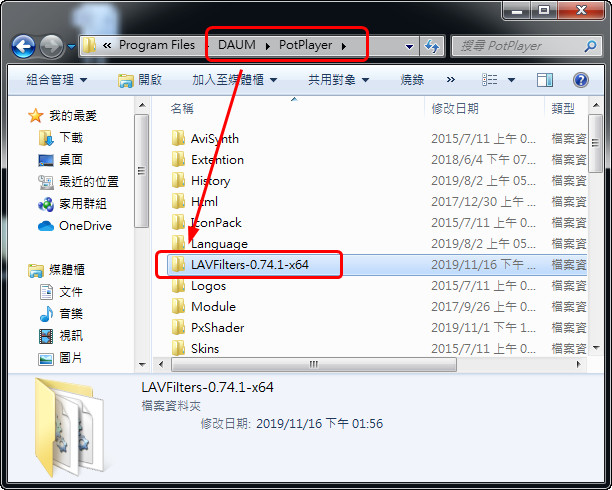 把解壓縮出來的整個資料夾,整個複製到安裝 Potplayer的資料夾下面。