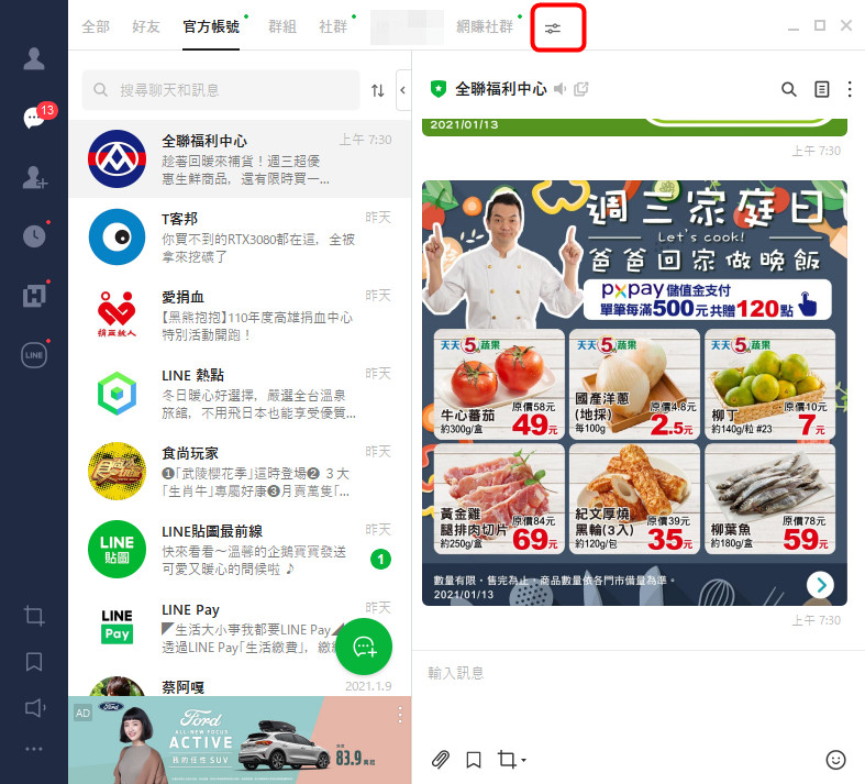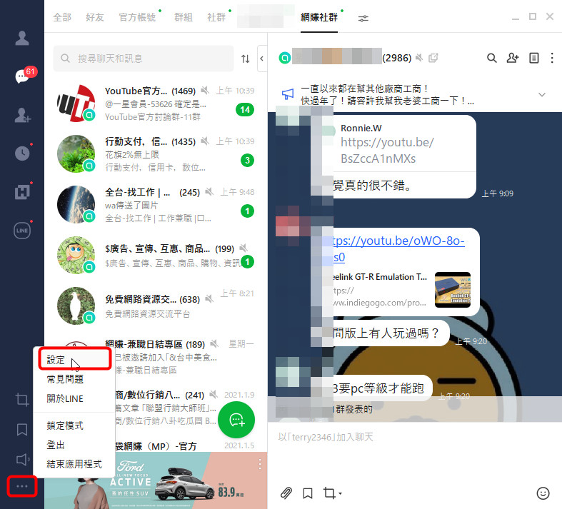 接著,我們介紹一下,怎麼開啟電腦版 LINE的聊天室分類功能。
