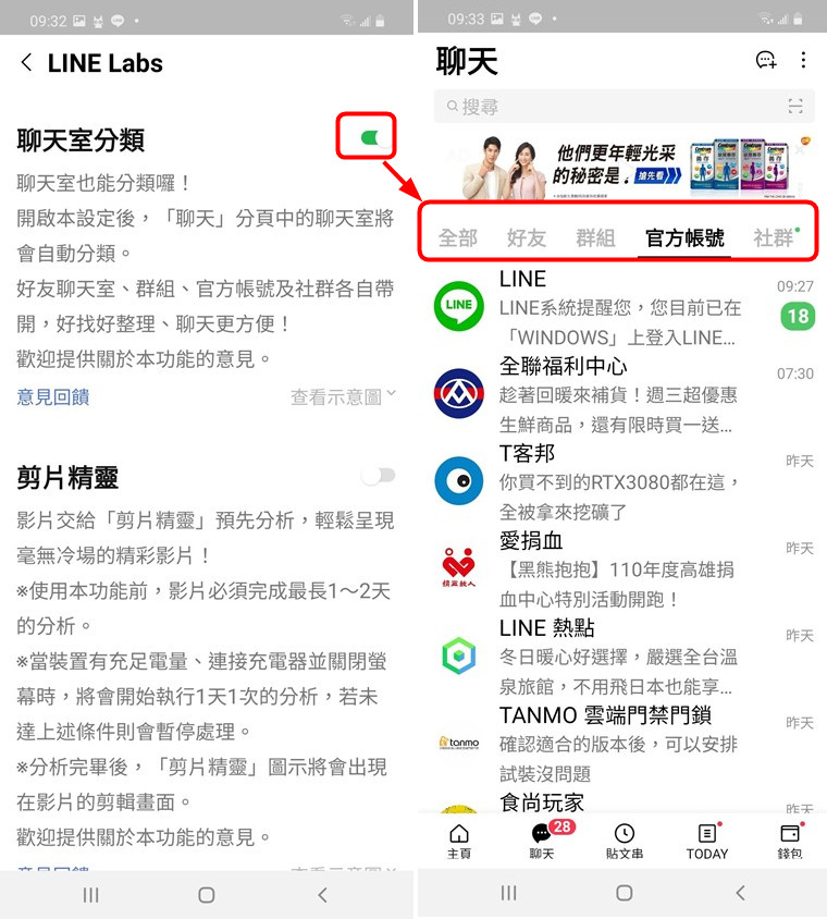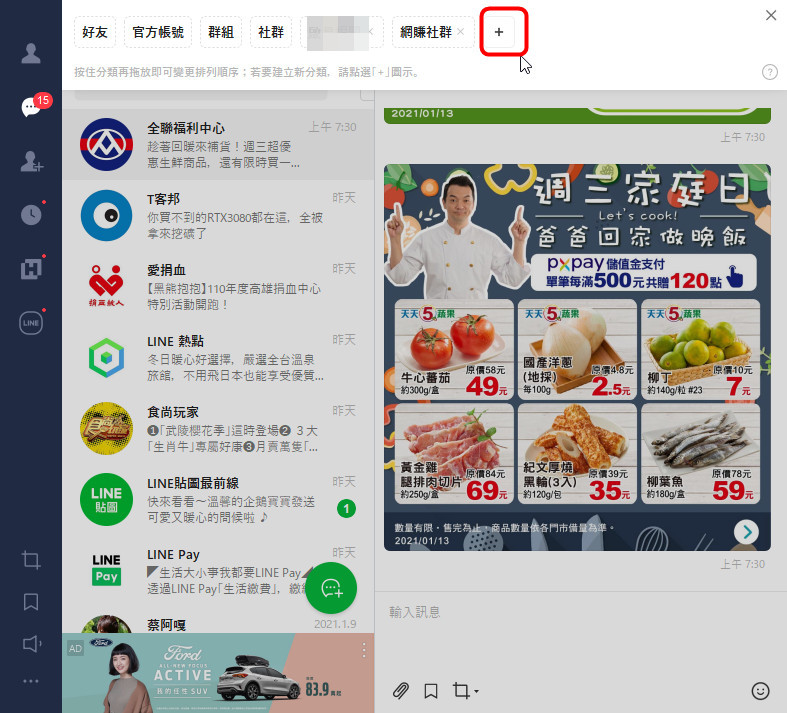開啟手機LINE及電腦版LINE的聊天室分類功能,電腦版LINE的必開功能