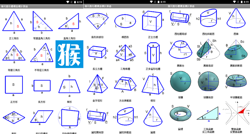 這次花了很多的時間,做了一個常見幾何形狀的體積面積計算器。這東西不難,但是做起來真的很花時間,我花了快一個月的時間才完成。