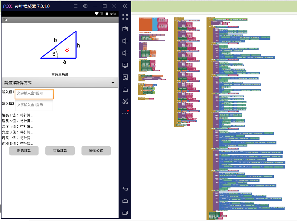 由於沒有下拉式選單,所以在 T9這個螢幕中,點擊開始計算按鈕要產生的反應就很好寫。判斷數字有沒有全部輸入,有全部輸入的話,就開始計算對應的數值。
