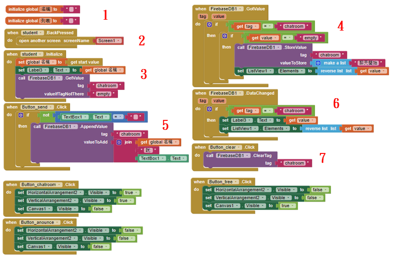 這裡要注意的是,call firebase.appendvalue,呼叫 firebase增加訊息功能,只能把新增資料,加入到清單的格式中。所以第 4部份的時候,才會用一個清單方塊,去儲存資料。不然就會發生錯誤。