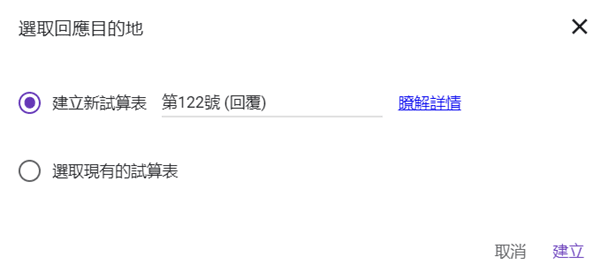 這個步驟其它可以省去,等到有人送出表單資料的時候,其實也是會自動建一個試算表。