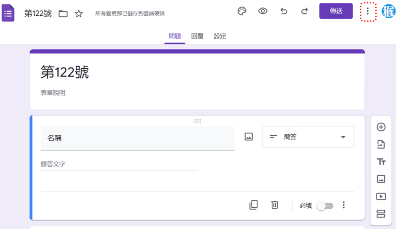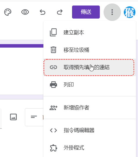 接著我們回到我們的表單中,點擊右上角的更多選項。