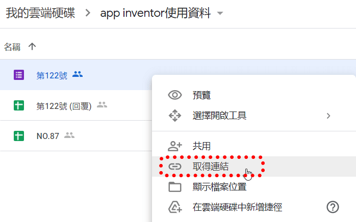接著我們打開 google硬碟中,表單所在地的資料夾。