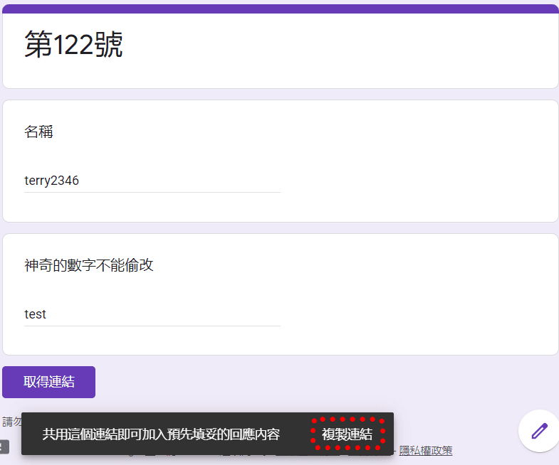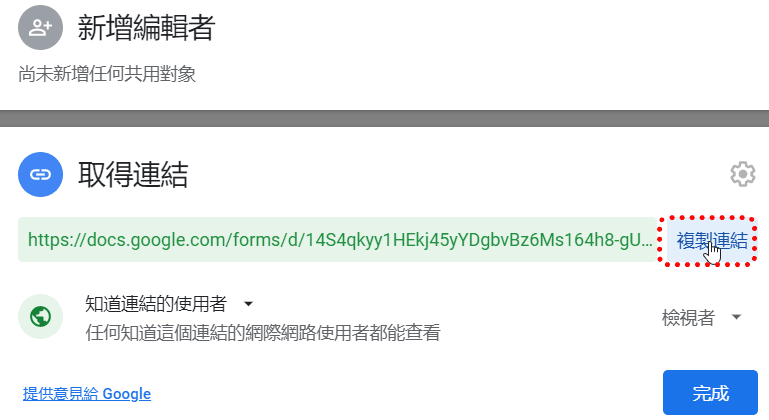 點擊取得預先填入的連結之後,會打開一個新的視窗。