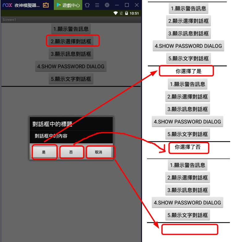 這一篇就是要記錄一下,在對話框做出選擇、或是輸入之後可做的事: