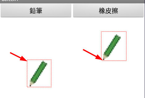 這裡因為鉛筆圖示的端點在左下角,所以我們要把圖片往上移,所以這里就是把手指頭點到的 y座標,減去圖像精靈的高度。