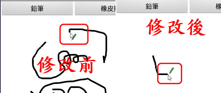 首先來看一下修改前後的差別。箭頭代表著是我們手指頭點的地方,我們會看到修改前箭頭和鉛筆圖示的位置不一樣,這樣看上去就挺怪的。我們要把它修改一下。
