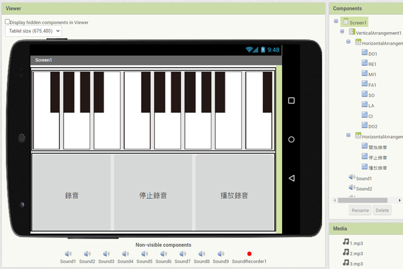 App Inventor學習記錄44,可以錄音,也可以播放的簡單小鋼琴 APP