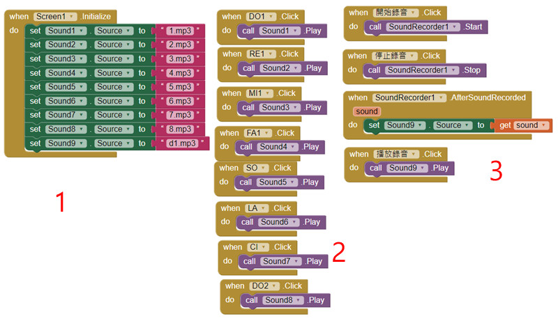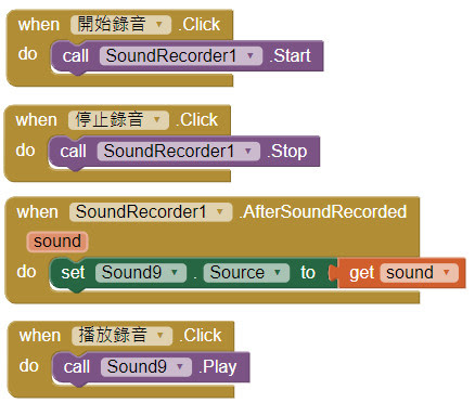 跟上一篇只差在多拉了 3個按鈕元件跟 1個 SoundRecorder錄音元件進來。