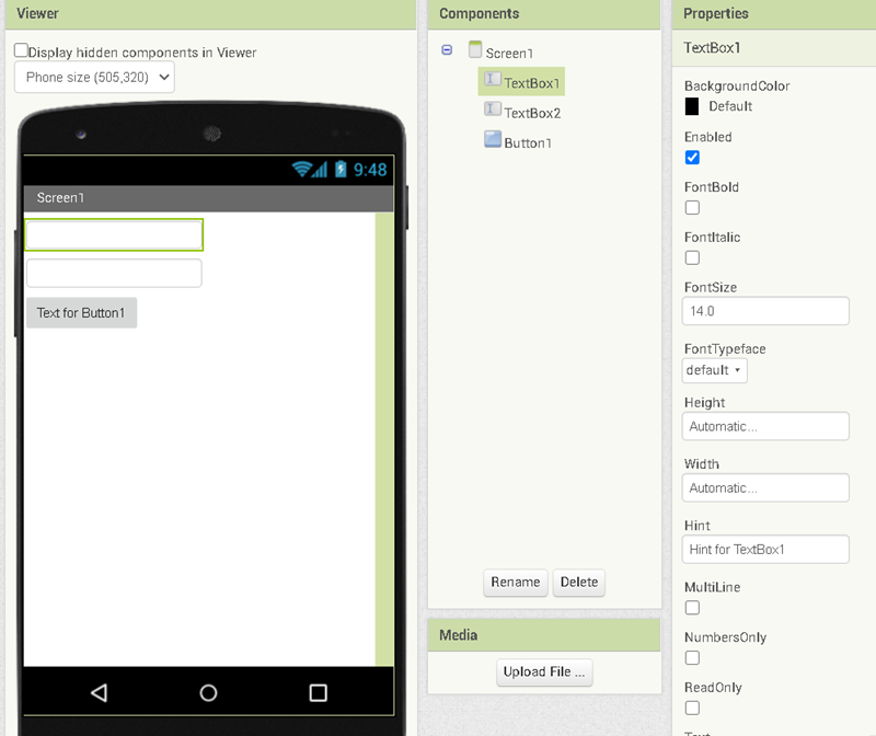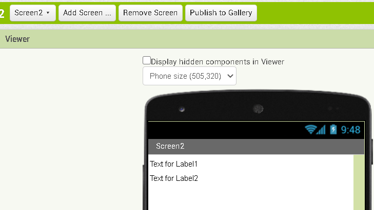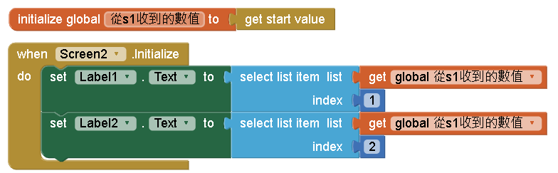 2個標籤元件,分別用來顯示由 screen1傳過來的值。