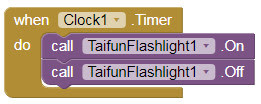 這個 TaifunFlashligh在app inventor中可以使用閃光燈的外掛,大家可以在 Puravida這個網站上找到,它也有放上簡單的介紹使用範例。除了 TaifunFlashligh這個外掛之外,還有其它的外掛介紹,建議大家可以去參考一下。