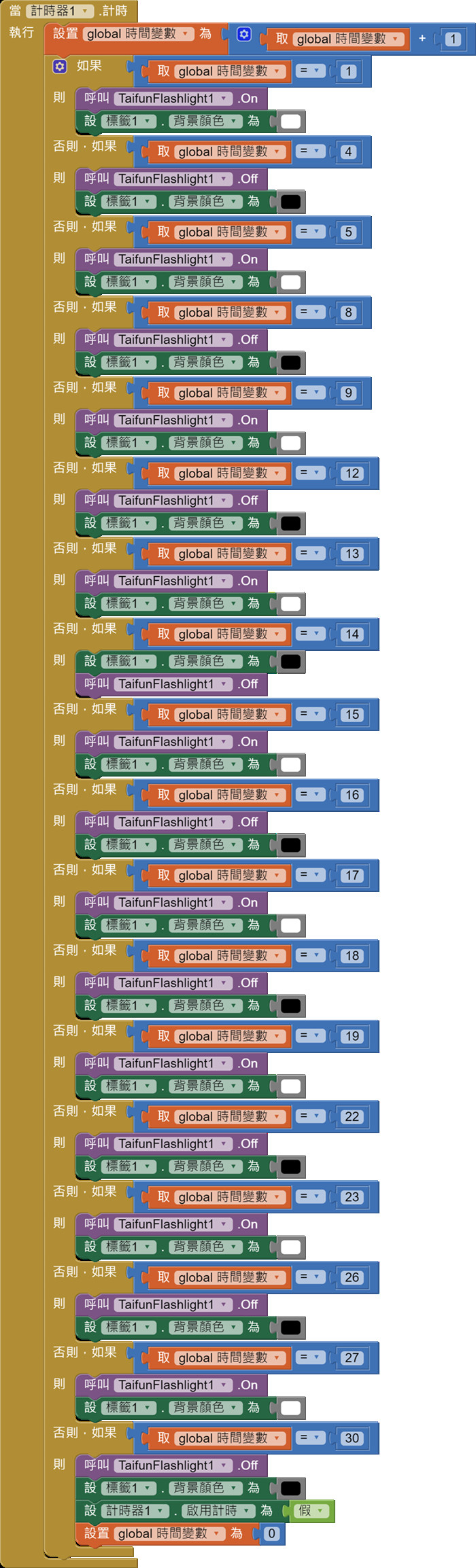 App Inventor學習記錄55,用閃光燈外掛和計時器元件,可以發出SOS閃光的APP