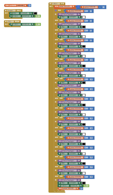 所以我們設定讓閃光燈在時間變數等於 1的時候開啟,時間變數等於 4的時候關閉。