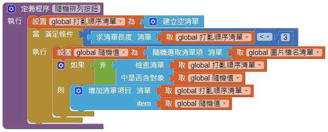 接著我們來設定隨機排列按鈕這個變數的清單內容。