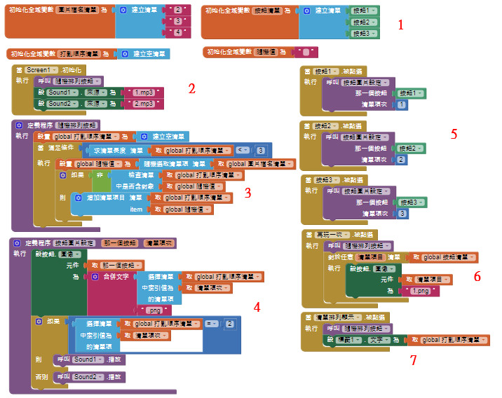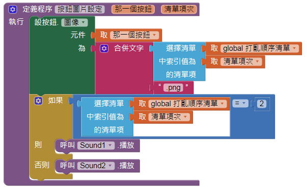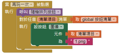 設定按鈕圖像元件為那一個按鈕。它的值則是用合併文字的方式來做,讓它等於打亂順序清單中的清單項次。