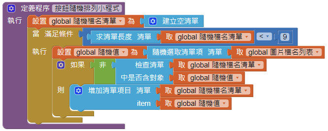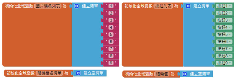 建立一個叫圖片檔名列表的變數,它的預設值是一個清單。清單的內容是 1~9的數字。