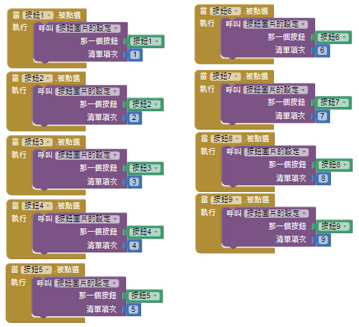 9個按鈕可以做,12個按鈕也可以做,用任意清單的方式來做,想做幾個按鈕的話都沒問題,只是複製按鈕方塊,調整一下參數的條件就可以了。