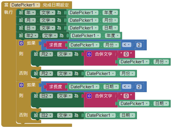 App Inventor學習記錄64,怎麼在日期選擇器選擇後,補上日期前面的零