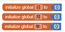 首先我用『initialize global』設定 3個變數,日、月、年,這 3個變數的初始值都設成 0。