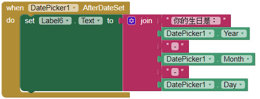 設定當用『DatePicker 1』選取日期之後,『Label 6』的文字內容。