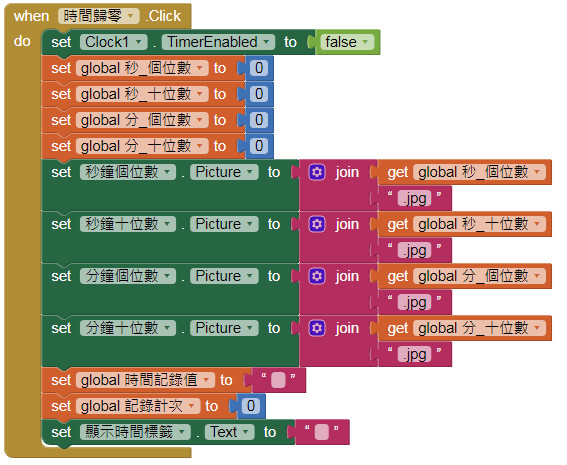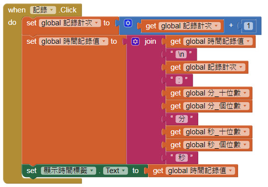 至於碼錶的記錄功能,也是用一個變數值去達成。