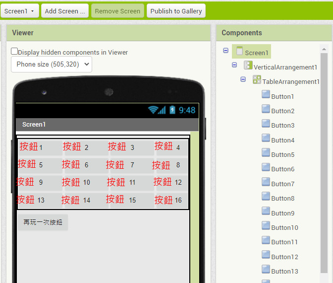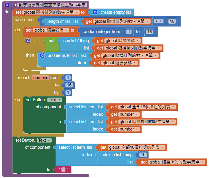 App Inventor學習記錄78,數字華容道小遊戲,清單取代功能,任意元件功能