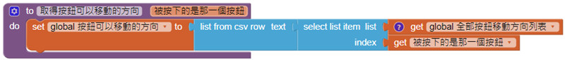 按鈕可以移動的方向這個變數的值,設定成 CSV列轉清單,要取的值就是全部按鈕移動方向列表中的第被按下的是那一個按鈕的這一項。