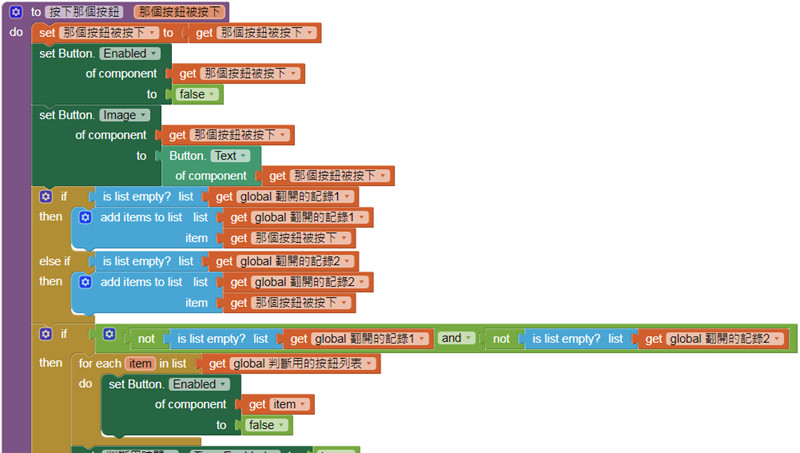 如果翻開的記錄 1這個清單是空白的話,就把這個按鈕加入翻開的記錄 1這個清單中,就不做否則如果的動作。那麼如果翻開的記錄 1這個清單是不是空白的話,就進行否則如果的判斷。