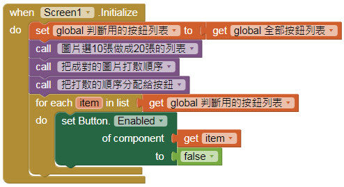 App Inventor學習記錄81,翻牌記憶遊戲,隨機取清單項目成題庫,再比對是翻牌是否正確