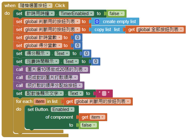 App Inventor學習記錄81,翻牌記憶遊戲,隨機取清單項目成題庫,再比對是翻牌是否正確