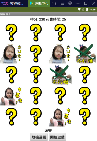 這些圖片是從 60張圖片中,隨機選 10張出來執行這個小遊戲,所以還挺有趣的。