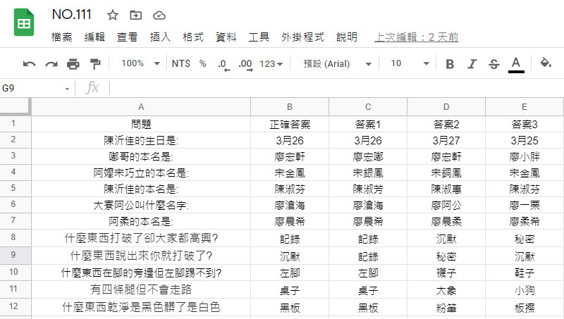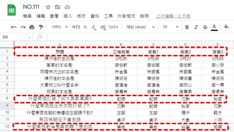 回顧一下我在上一篇中是怎麼建立題目和答案的清單。