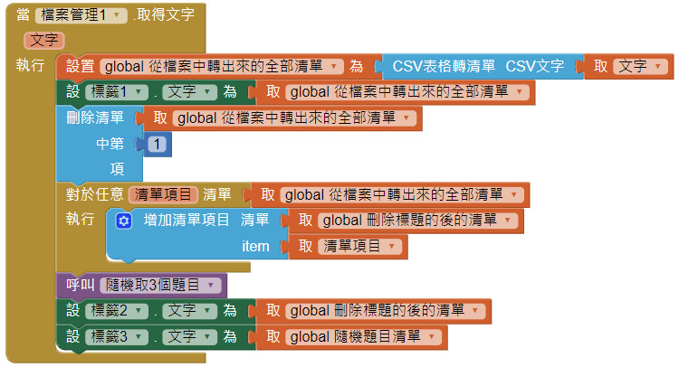 App Inventor學習記錄83,用檔案管理元件讀取CSV檔文件,把CSV檔轉成可使用的清單