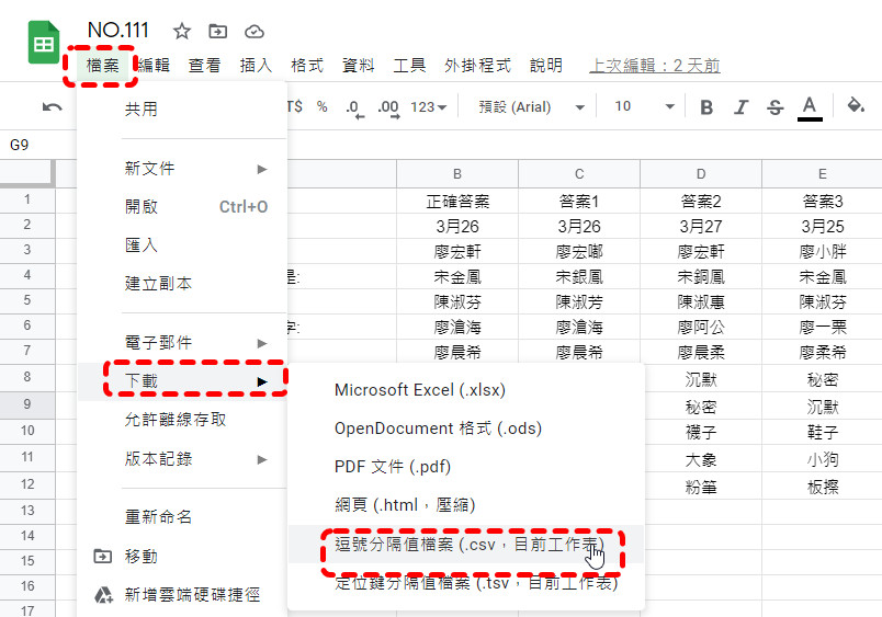 這裡補充一下,怎麼把 google sheet的表單匯出成 csv檔