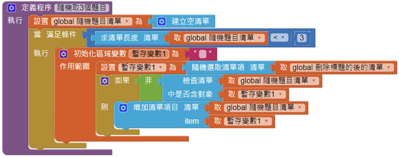 3. 隨機題目清單,就是從第 2項的資料中,隨機取幾個項目成一個新的清單。