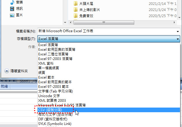 依序點擊檔案下載逗號分隔值檔案(.csv,目前的工作表)