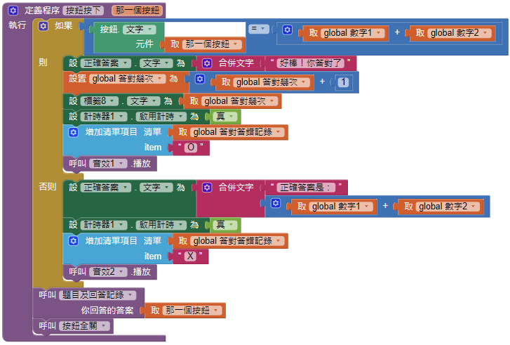 呼叫按鈕按下這個程式,那一個按鈕則代入答案按鈕。