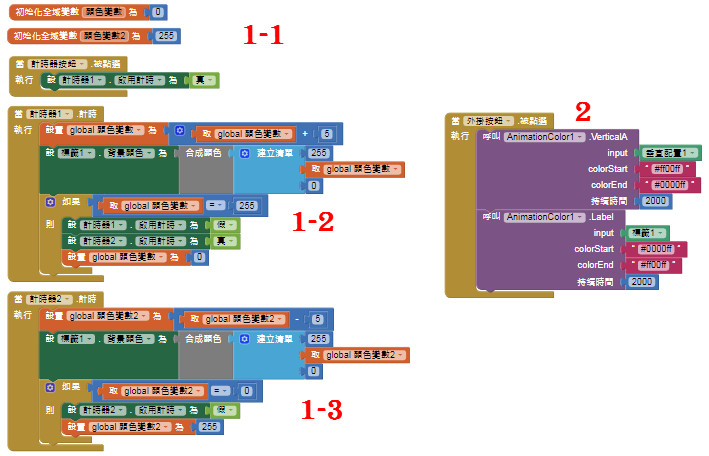 這裡用兩個計時器是為了讓顏色可以變過來再變回去。
