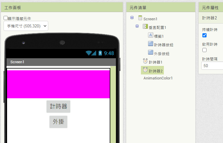 App Inventor學習記錄90-用計時器做顏色漸變效果,用外掛做顏色漸變效果