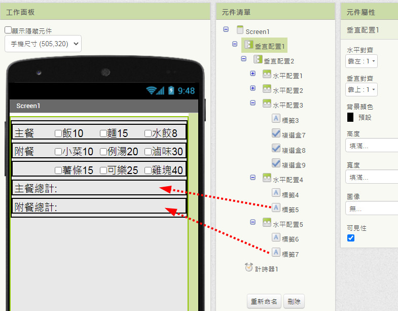 最後再把標籤的文字設定成附餐價格就完成了。