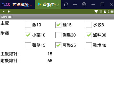 這裡除了標籤 5和標籤 7是用來分別顯示加總結果外,其它大部份的都是複選框。