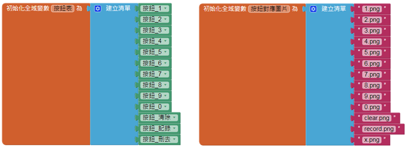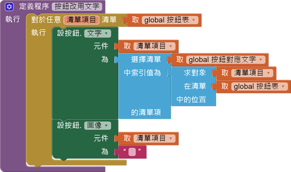 這個程式執行的時候,把按鈕表這個清單中所有的按鈕的文字,都設定成按鈕對應文字清單中的文字,再把所有按鈕的圖片設定成空白。