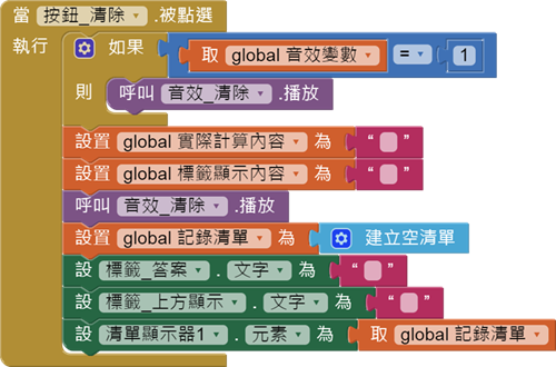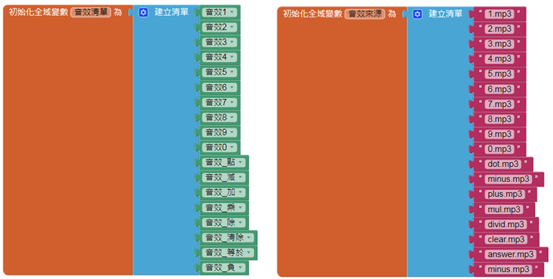答案數字對應音效這個清單中,放的都是在答案中會出現的數字,再用這些數字去找相對應的音效元件,來發出聲音,所以像加減乘除這種不會在答案中出現的符號,就不列在這個清單中。