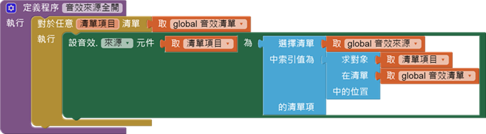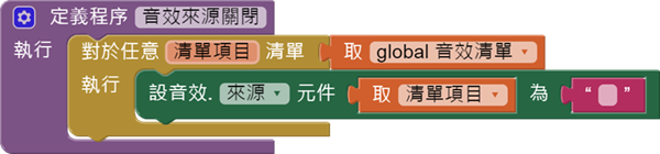 音效清單這個變數,是建立一個清單,把所有的音效元件都加到這裡頭。