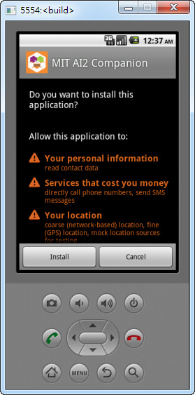 這個是正常的,因為我們要載入寫好的 app inventor程式碼,它才會啟動。