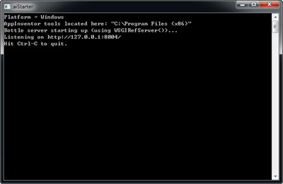 這裡要補充一次,在 APP INVENTOR連線到模擬器之前,都一定要先打開『ai Starter』這個程式,讓下面這個視窗跑出來。不要關掉它、不要關掉它、不要關掉它,很重要所以說三便。