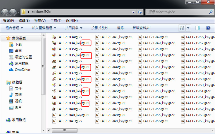 我們將下載回來的檔案解壓縮之後,可以看到資料夾多出來好幾個檔案,這裡我們直接把檔名後面_key@2x的檔案直接刪除,這個代表這個圖檔是原有圖檔的1/2大小。