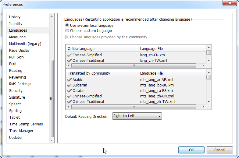 第一個選項是點”Use system local language“,這樣foxit reader會依照電腦系統的語系,自動去選擇foxit reader的介面語系。